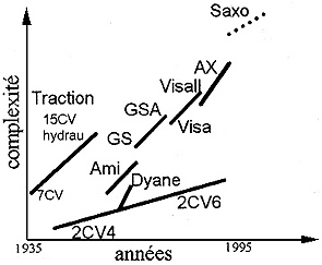 Évolution de la compléxité3 des bas de gamme Citroën.