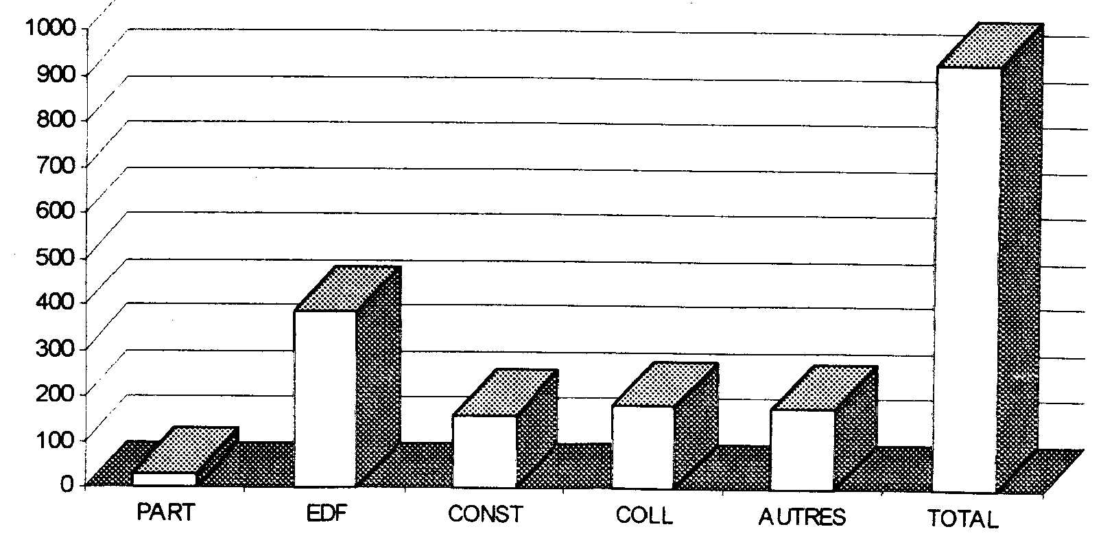 Cependant, il semble que la clientèle ciblée par le Groupe PSA, à savoir les particuliers, ne figure pas parmi les principaux acheteurs de véhicules électriques. En effet, lanalyse des ventes de véhicules électriques de juin 1995 à juillet 1996 nous montre que les particuliers ne représentent que 3% des acheteurs, loin derrière EDF qui a acquis 42% sur la même période. Les deux graphiques (figures 18 et 19) qui suivent présentent le nombre dimmatriculation de chaque modèle commercialisé, ainsi que la répartition des immatriculations par type de clientèle cible.