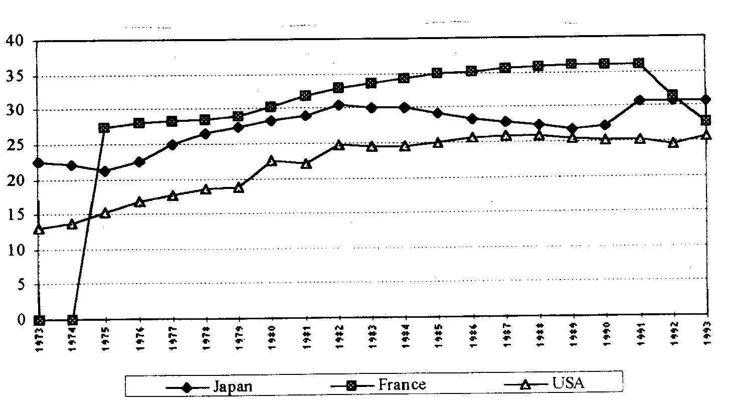 Sur la période considérée, ce parc s'est accru annuellement de 17 % au Japon, de 4 % en France, de 10,7 % en Italie, de 5,5 % au Royaume-Uni, de 7,3 % en Allemagne de l'Ouest et de 3 % aux Etats-Unis.