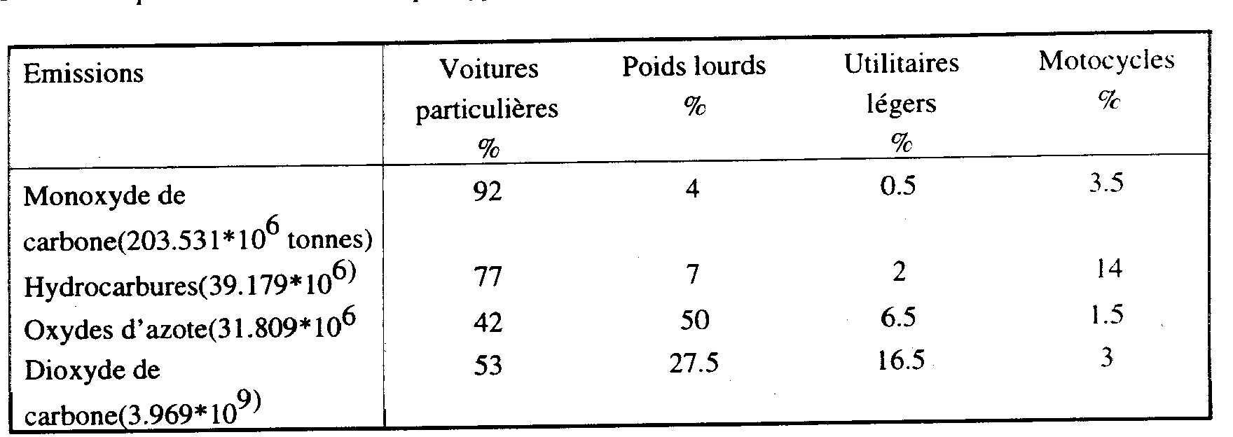 La part de l'automobile (cf. tableau 1) est importante en dépit du durcissement des normes d'émissions atmosphériques pour les voitures particulières.